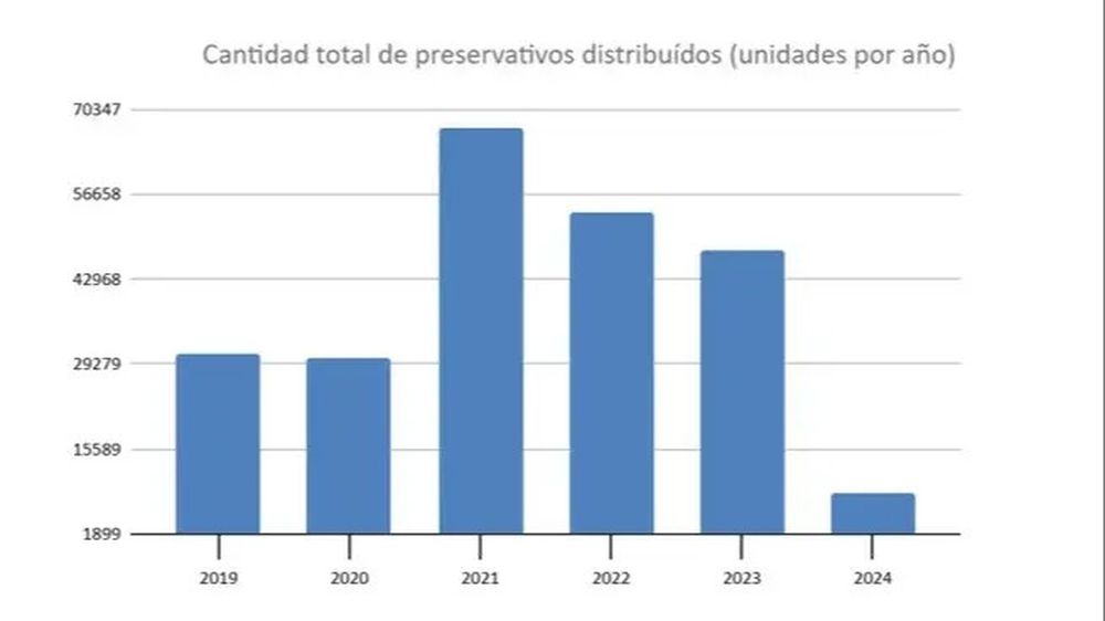 De los casi 4 millones de profilácticos que se distribuían por mes en 2010, el año pasado esa cifra se ubicó en apenas 209.328 durante la gestión mileísta, en línea con el brutal ajuste en el área. Basta ver las cifras oficiales para verificarlo. En el Boletín N°41 de Respuesta al VIH y las ITS en la Argentina de diciembre de 2024, el Gobierno afirmó que la distribución de preservativos peneanos se concretó en “todas las jurisdicciones del país” y que “todas las personas pueden acceder a los preservativos y geles lubricantes a través de la entrega en mano”. Sin embargo, al ver la letra chica, se desprende que el recorte en la provisión fue brutal.