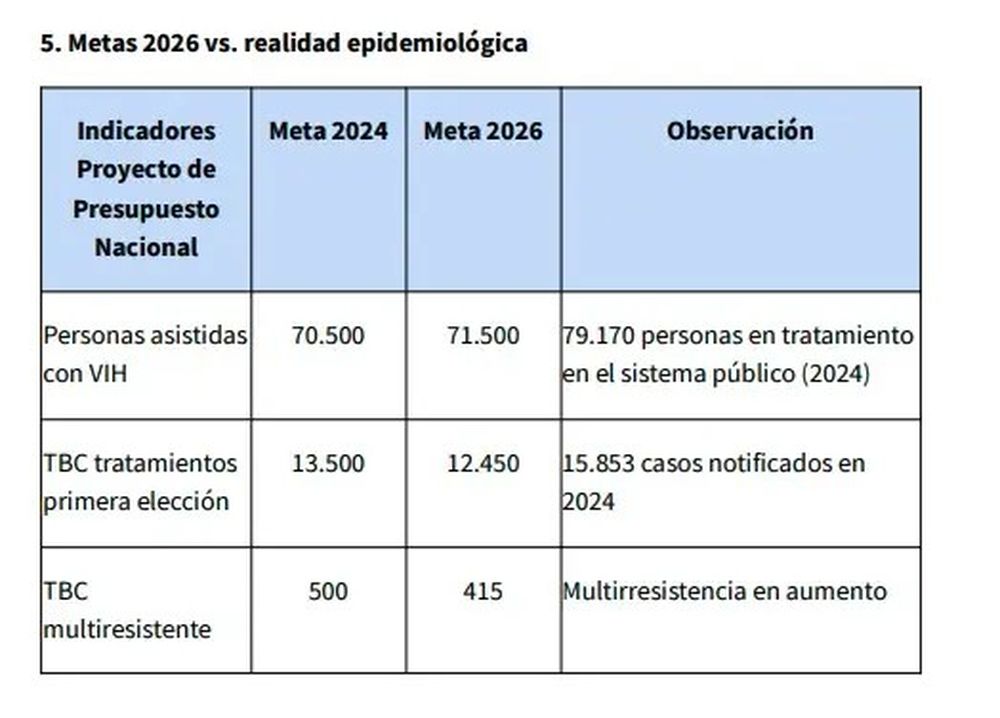 Frente a las críticas de las organizaciones, desde el Ministerio de Salud aseguraron a El Destape que durante 2024 “un total de 70.000 personas recibieron tratamiento antirretroviral provisto por el sector público de salud” y “se suministraron 13.330 tratamientos para tuberculosis (TBC) en el ámbito del sistema público”. “El presupuesto 2026 garantiza la cobertura integral de las acciones de tratamiento, diagnóstico y prevención correspondientes al Programa 22, incluyendo tanto a las personas que actualmente se encuentran en tratamiento como a la proyección de nuevos tratamientos correspondientes a VIH, TBC, Hepatitis virales, otras ITS y Lepra”, dicen respecto al incremento del presupuesto estipulado para el año que viene, “que asciende a $62.087.201.568, manteniendo la estrategia orientada a optimizar los recursos destinados al cumplimiento de las acciones planificadas para el próximo período y consolidando la mejora de la respuesta nacional al VIH, ITS, Hepatitis Virales, Tuberculosis y Lepra”.