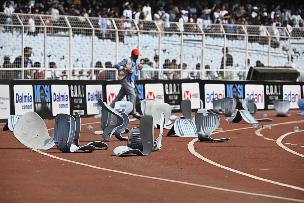 La visita de Lionel Messi a India desató incidentes en el Estadio Salt Lake de Calcuta durante el inicio de su gira, cuando aficionados arrojaron asientos y objetos al campo tras una breve aparición del jugador argentino. El evento, esperado con alta expectativa, terminó con disturbios y descontento entre los presentes.